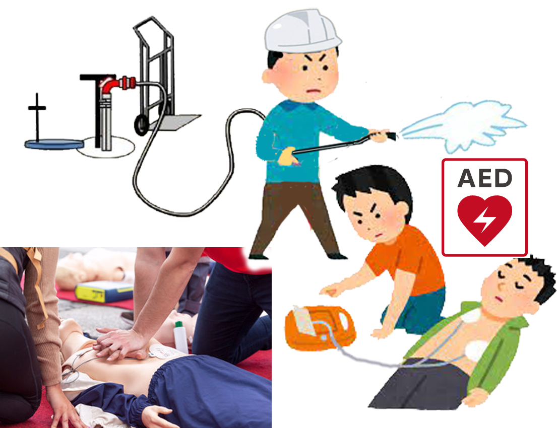 (3)もちろん心肺蘇生の方法も実際にやってもらいます。
