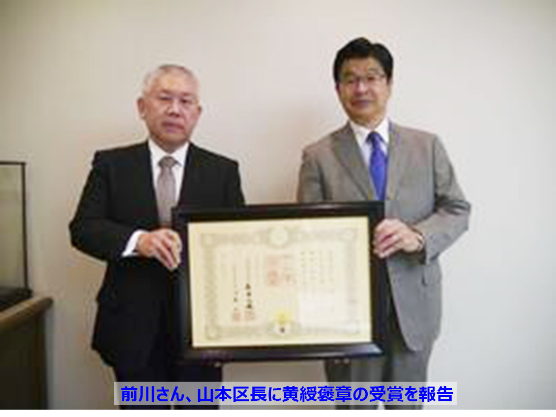 すみだマイスターに認定されている前川治さんが、令和5年秋の褒章(黄綬褒章)を 受章され、11月15日、墨田区長に受章の報告をしました。