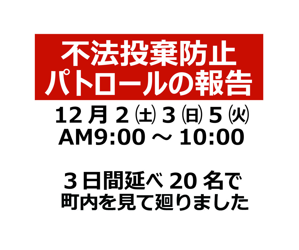 12月の初め、3日間、不法投棄がないかパト ロール
