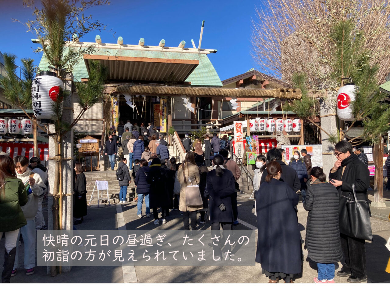 明けましたおめでとうございます。元旦を迎え、午後から町会の神輿の睦会である 「松睦会」の会員有志が毎年恒例の深川神明宮に昇殿参拝をしました。