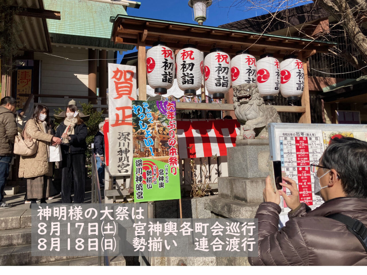 神明さまの境内は、多くの参拝者が見えられていました。神明さまは、深川七福神 の「寿老神」を祭ってありますので、七福神巡りの参拝者も多くお越しになっていま す。