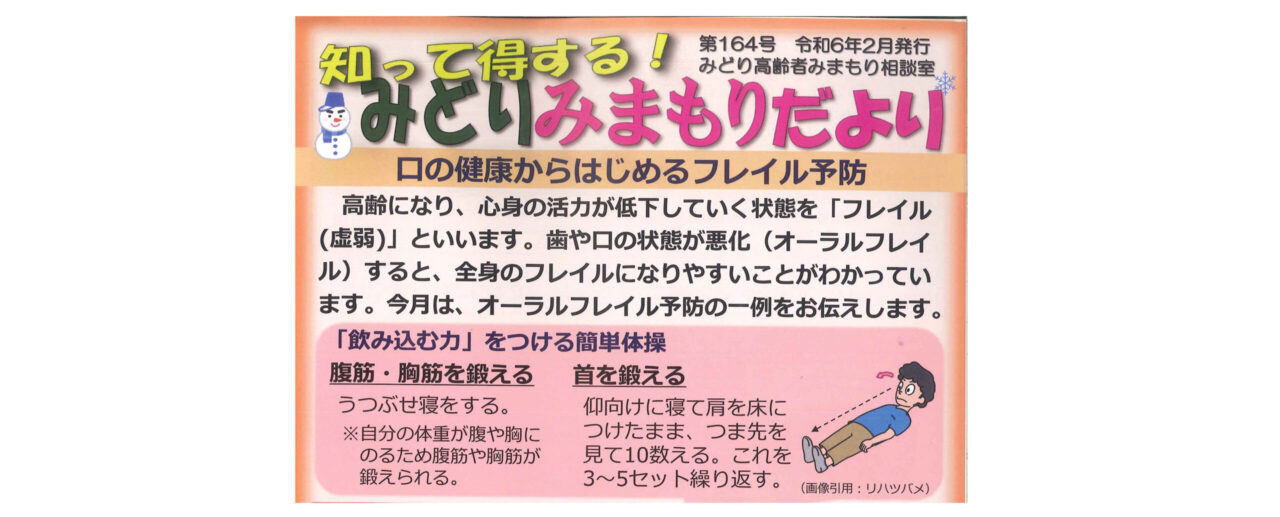今月は、オーラルフレイル予防の一例をお伝えします。