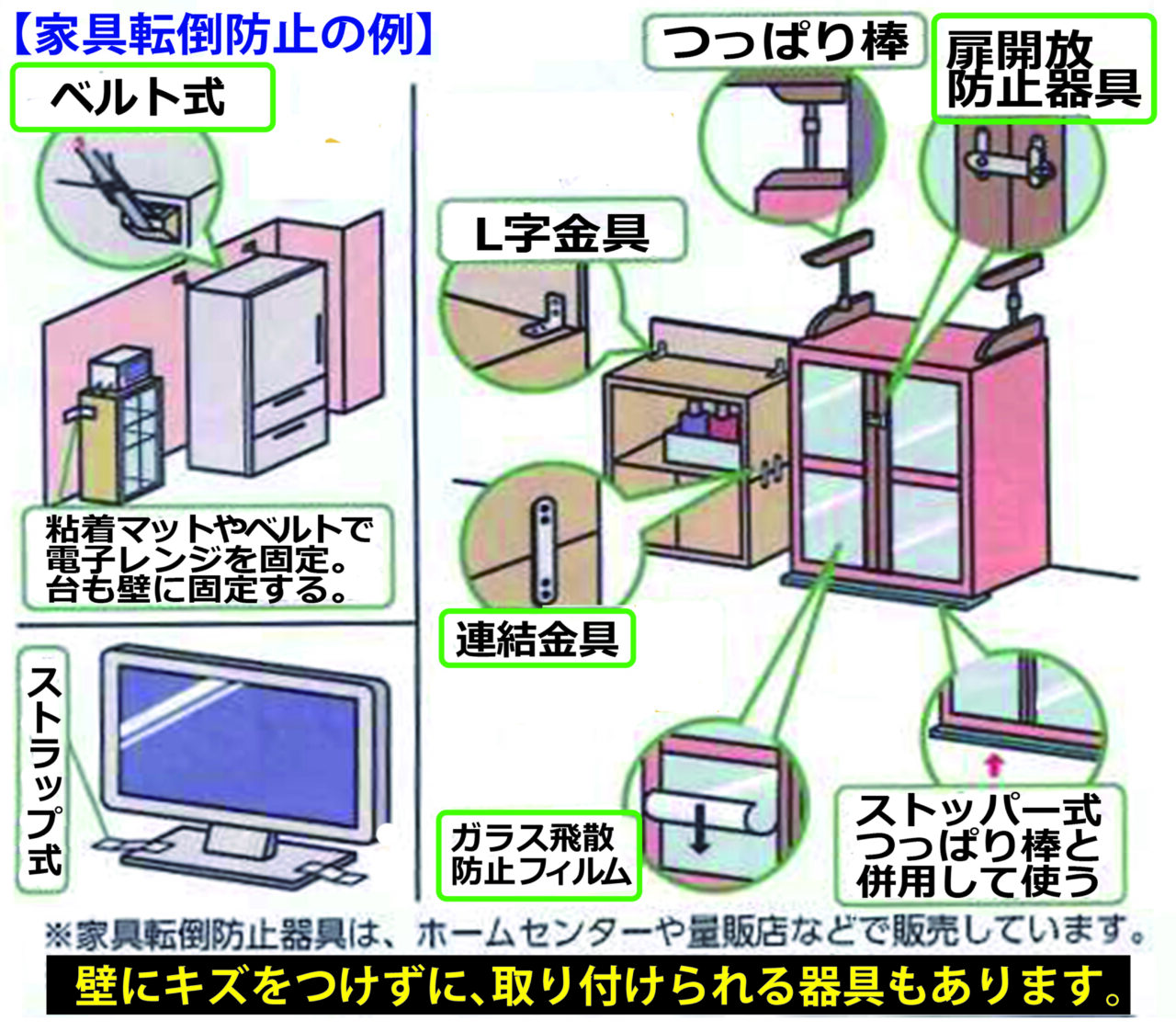 1. 家具転倒防止器具の取付け…1世帯あたり14,500円まで支援