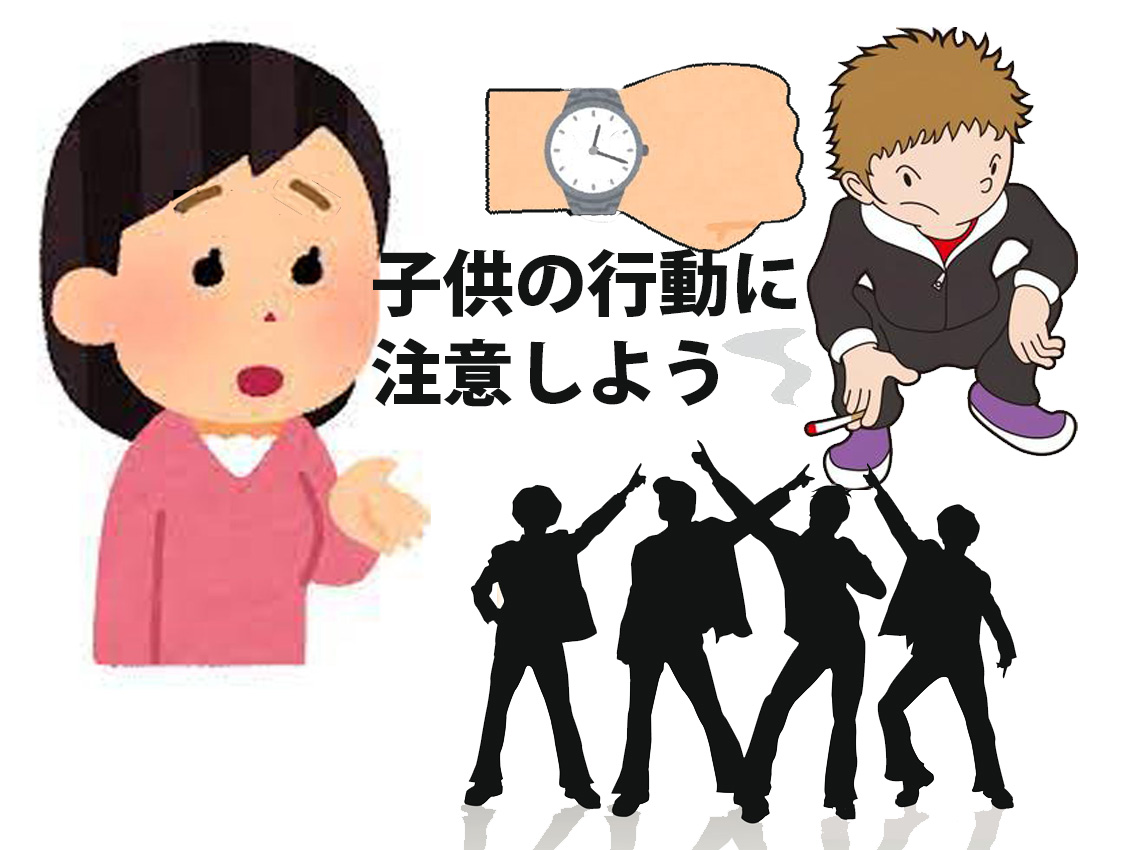 非行に走る少年は言葉遣いや服装・所持品・金品などに変化が見られ、深夜徘徊、無 断外泊を繰り返すなどの兆しが見られます。