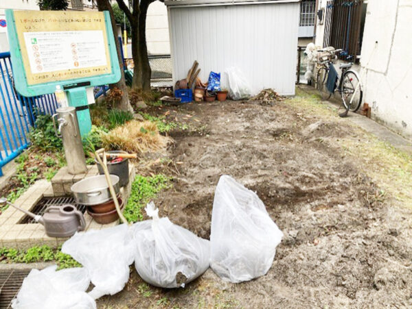 砂を全部撤去したら墨田区の公園課の方が砂を処分してくれます。それから土壌改良です。