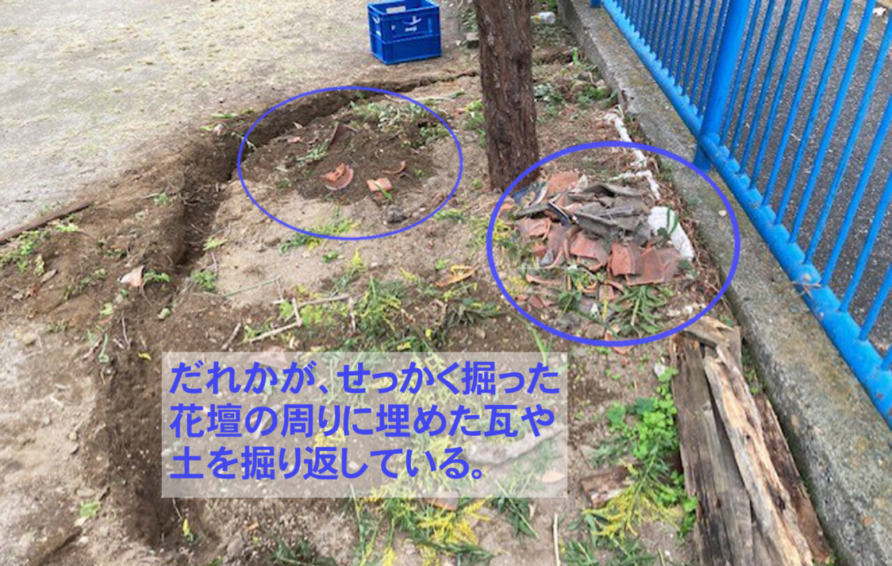 折角、花壇を作りはじめたのに誰かが周りを掘り返している。誰だね!