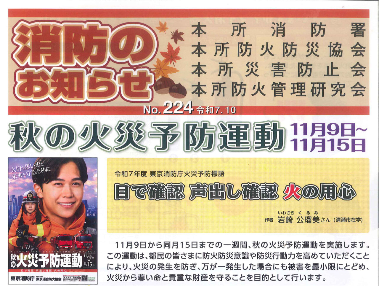 【本所消防署】秋の火災予防運動11/9~11/15