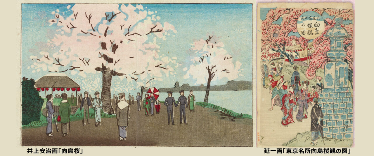 ■墨田堤の桜は、享保10年(1725)木母寺境内と隣の御前栽畑に江戸城御庭の桜樹が移されたことが始まりで、徐々に南に延びていき、明治初期には旧水戸藩邸側の枕橋に到達する。