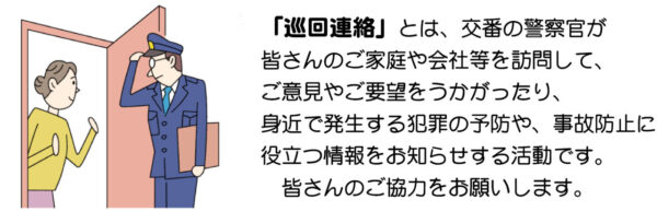 巡回連絡の趣旨にご理解いただき、巡回連絡カードの記載にご協力をお願いします。
